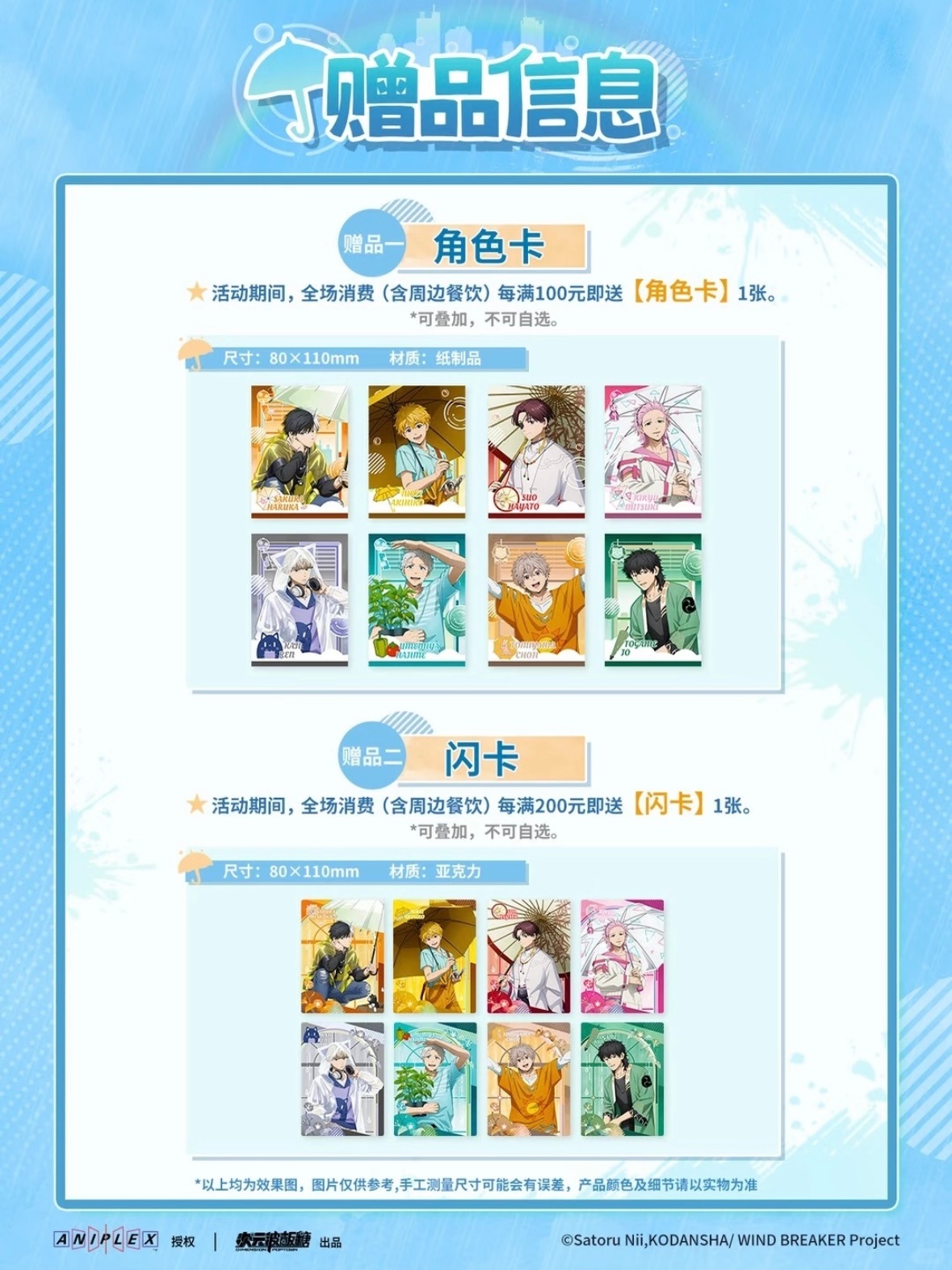 8500円以上お買い上げごとに、キャラカード1枚+アクリルカード1枚差し上げます。
